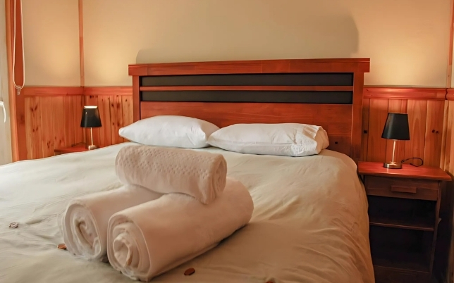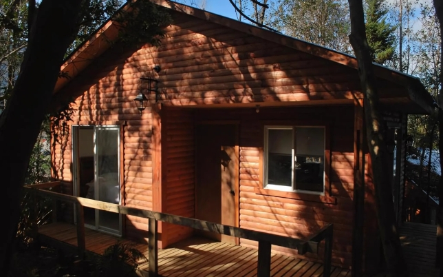 Chucao Bosque y Cabañas se emplaza en un pequeño bosque a escasas 4 cuadras de la plaza central de la ciudad. Las cabañas tienen un estilo rústico y constan de 1 dormitorio con una cama matrimonial y con baño privado, además de contar con una pequeña cocina / comedor equipado.